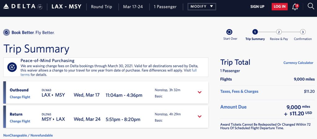 Screenshots made at Delta.com on 2021/02/23