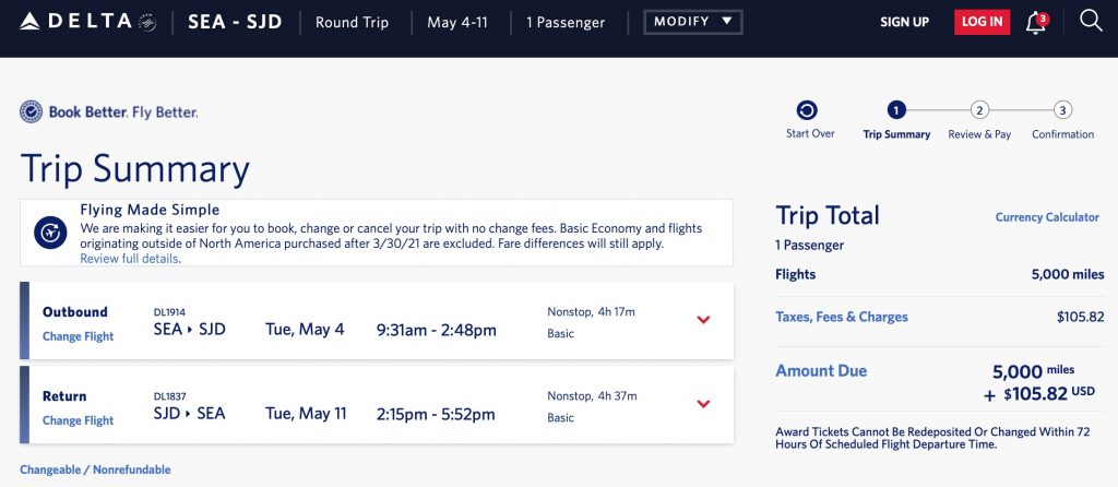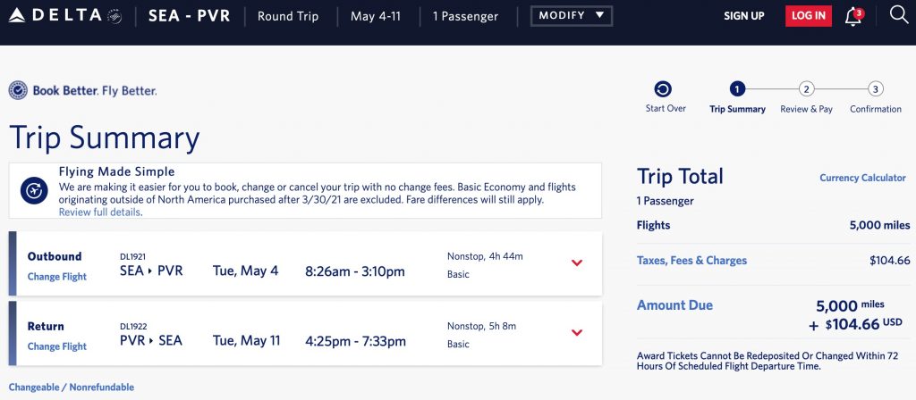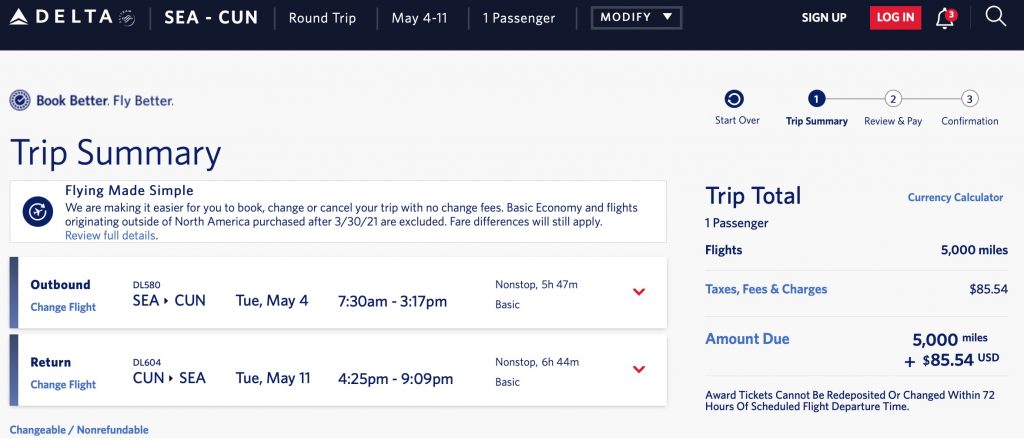 Amazing award travel deals via Delta — round-trip flights via Delta from Seattle to Mexico for 5000 miles + taxes and fees.