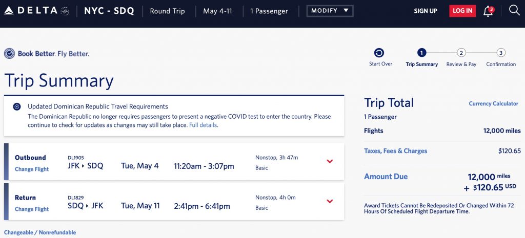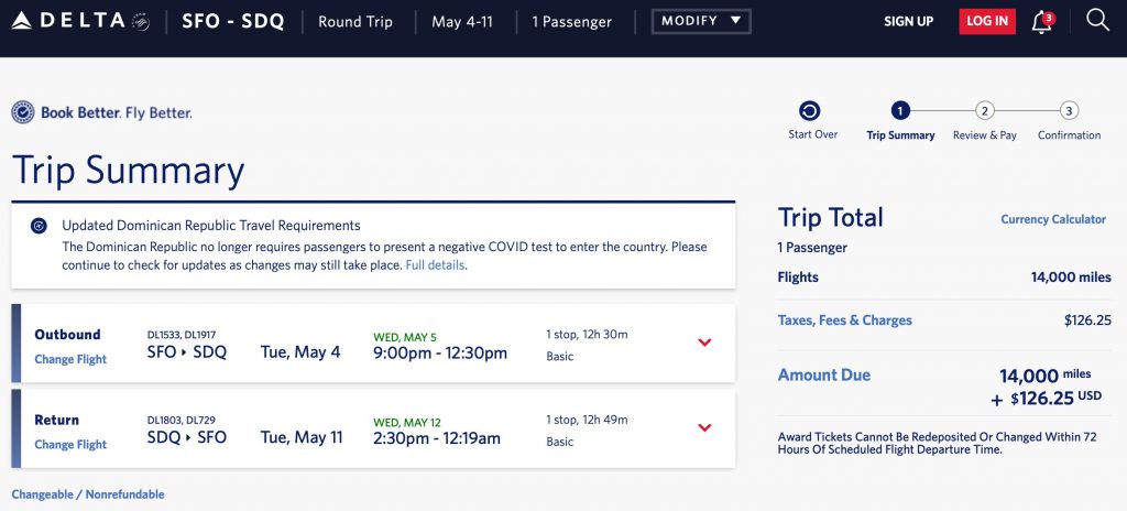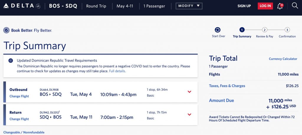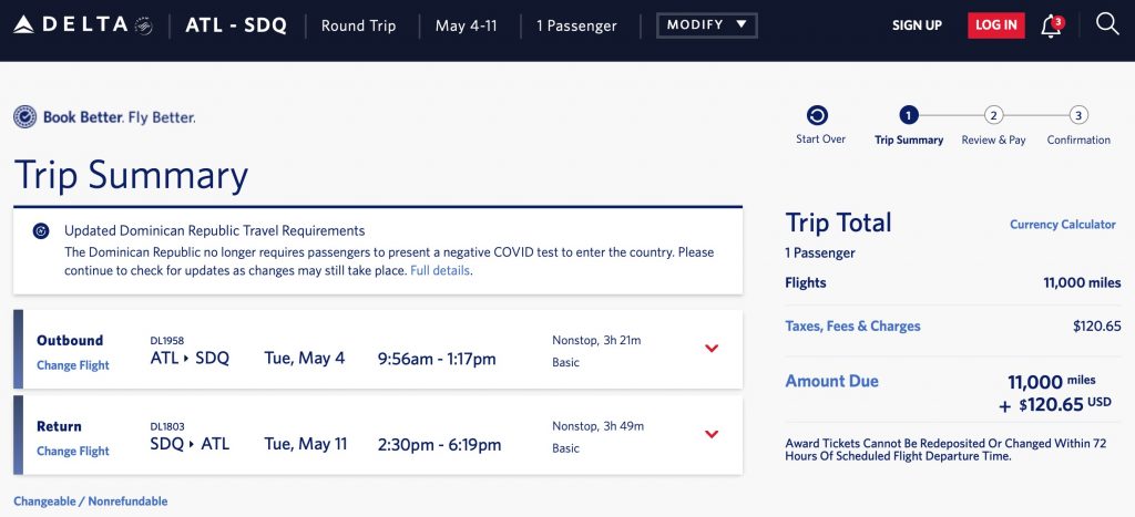 Amazing award travel deals via Delta — round-trip flights via Delta to Dominican Republic from 11000 miles + taxes and fees.