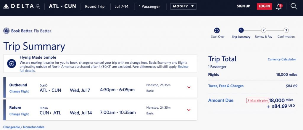 Peak summer nonstop via Delta! Atlanta to Cancun, Mexico for $337 R/T or 18k miles