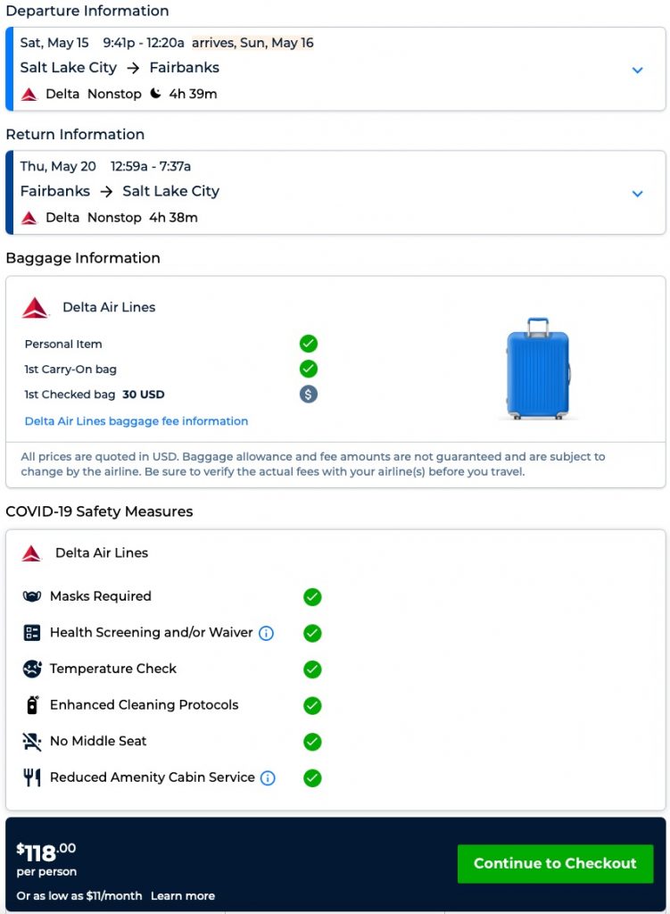 Amazing deal: Salt Lake City to Alaska: Fairbanks and v/versa flight round-trip as low as $118.