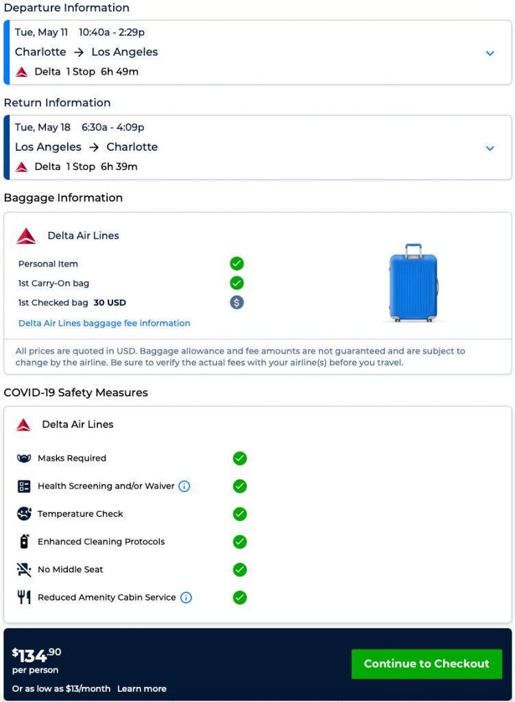 Delta! Charlotte to Los Angeles, San Diego or Phoenix and v/versa for $67 one-way ($134 R/T)