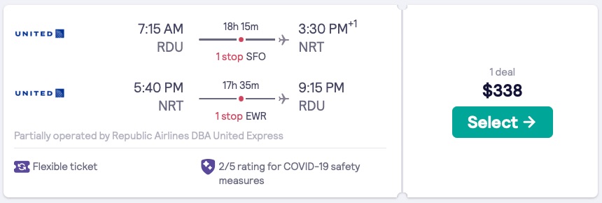 Amazing deal: Raleigh to Tokyo, Japan for $338 round-trip.
