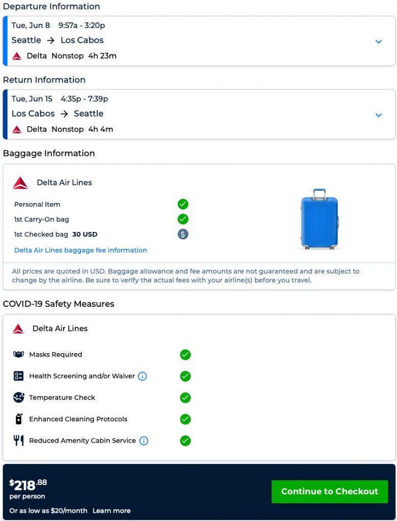 Delta’s Award Travel is subject to government-imposed taxes and fees and carrier-imposed charges, which are the responsibility of the passenger and must be paid at the time the ticket is booked.