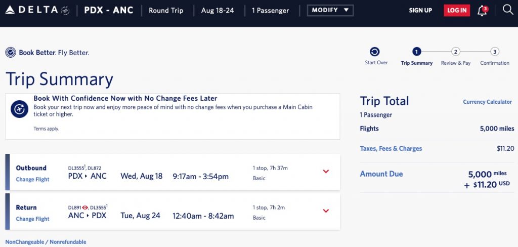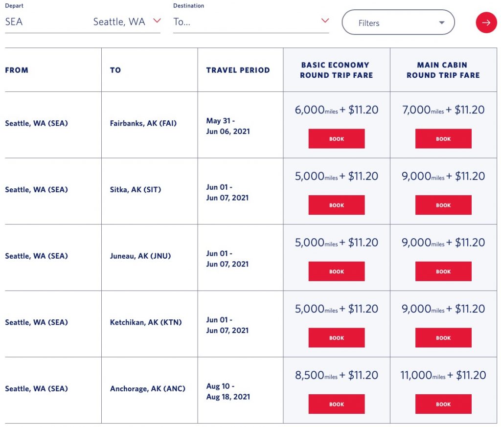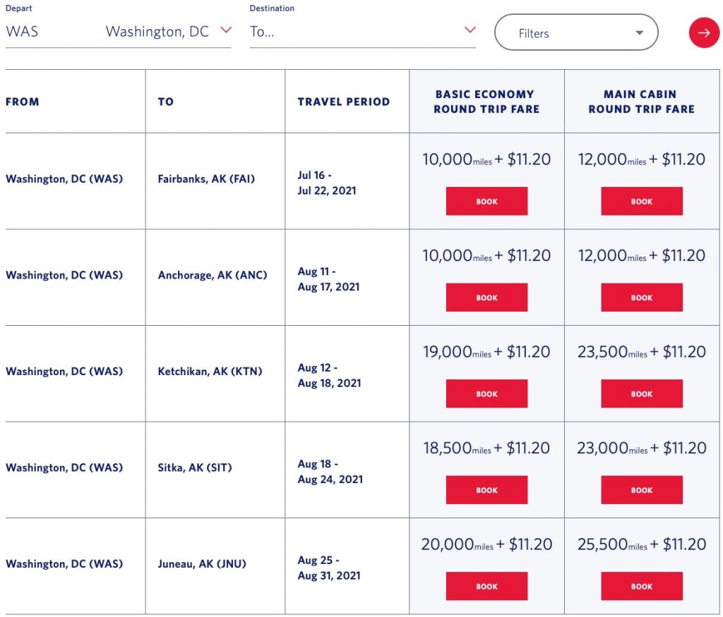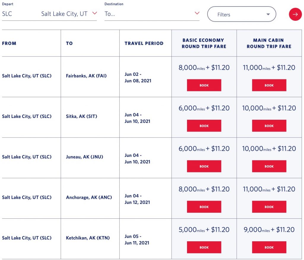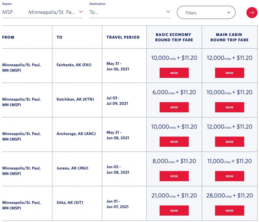 Amazing award travel deals via Delta — round-trip flights via Delta to Alaska: Anchorage for 5000 miles + taxes and fees.