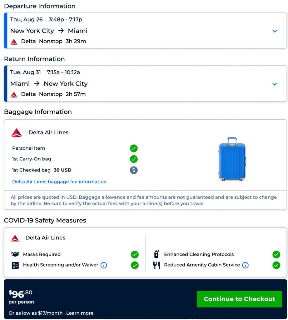Late summer nonstop via Delta! New York to Miami and v/versa for $48 one-way ($96 R/T)