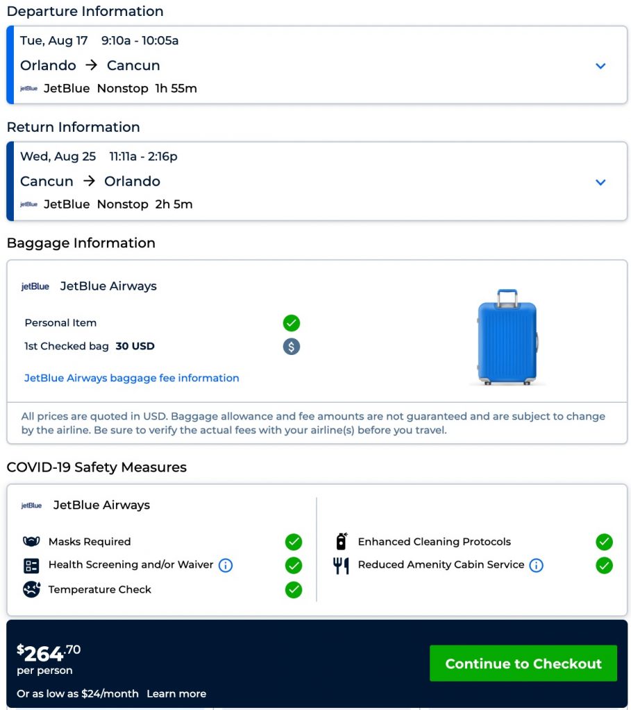 Late summer nonstop! Orlando to Cancun, Mexico for $265 R/T