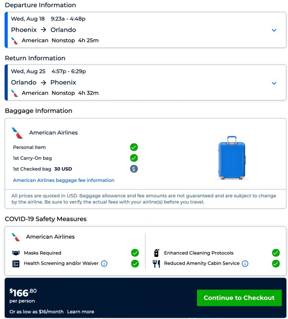 Amazing deal: Phoenix to Orlando, Florida and v/versa from $166 round-trip.