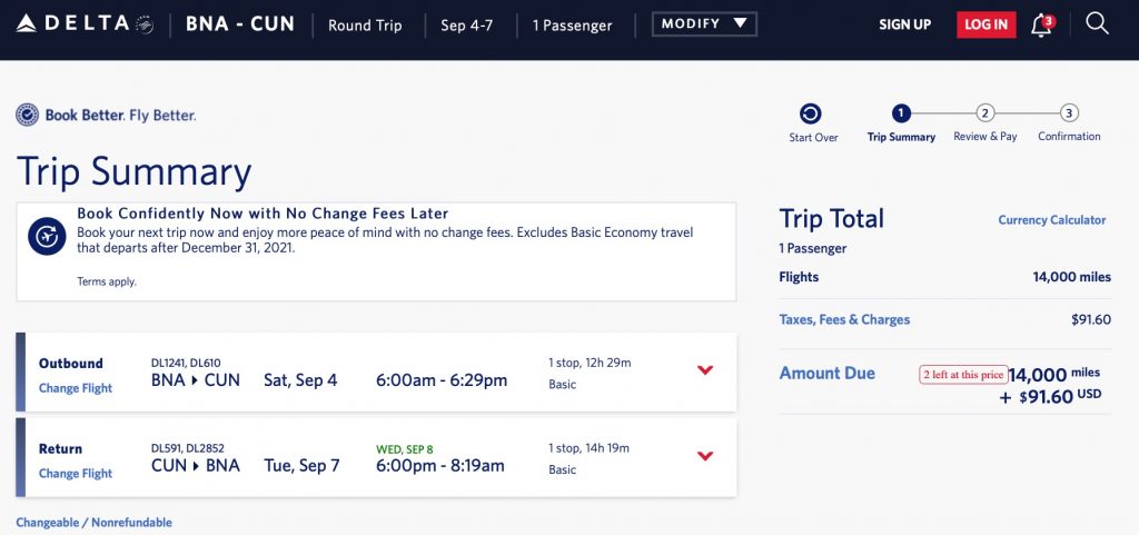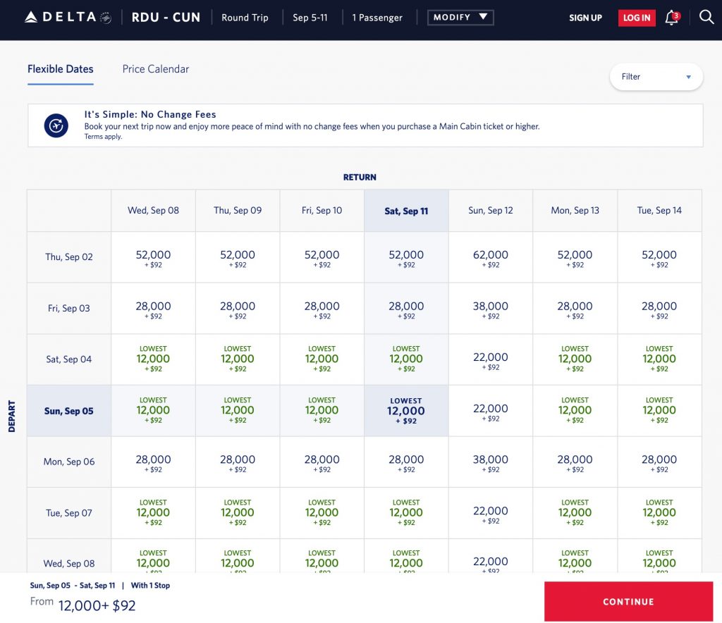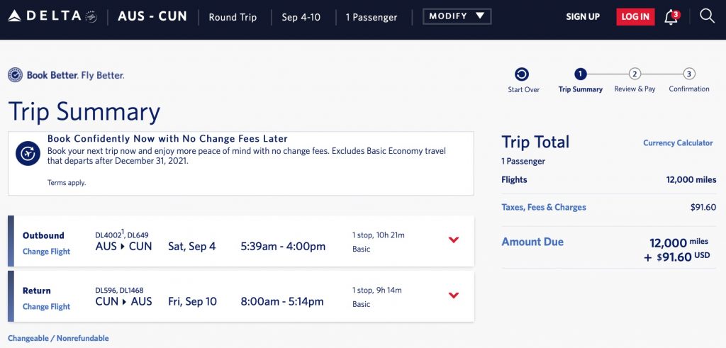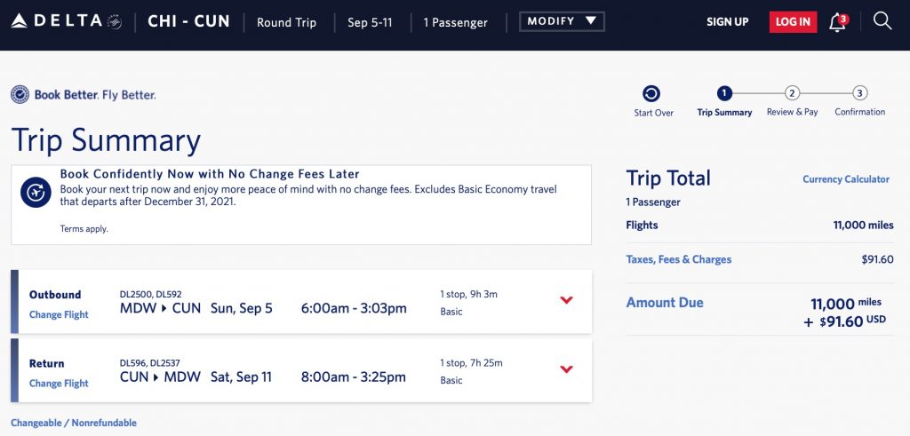 Amazing award travel deals via Delta — round-trip flights via Delta to Cancun, Mexico and v/versa from 11000 miles + taxes and fees.