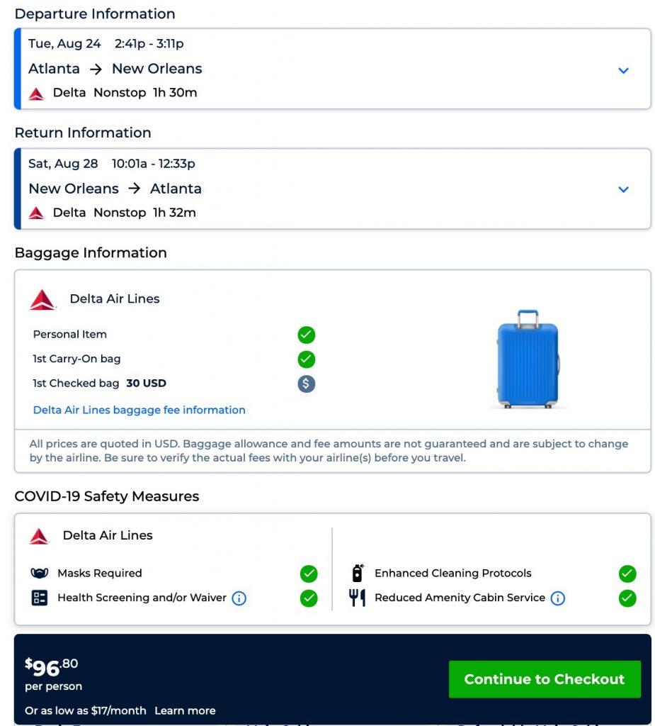 Amazing deal: Atlanta to New Orleans and v/versa from $96 round-trip.