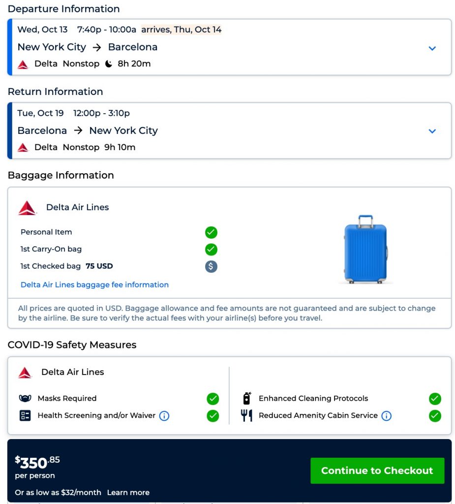 | Delta, nonstop; 2022 incl. | New York to Spain: Barcelona or Madrid from $350 R/T
