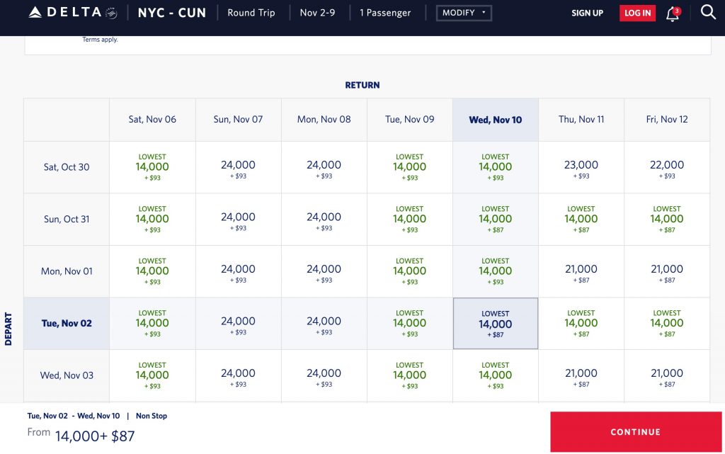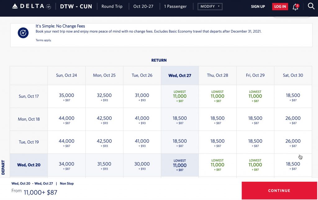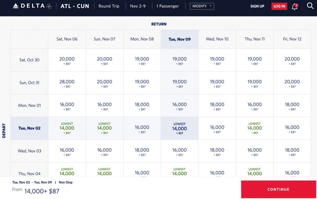 | Delta, nonstop | New York, Atlanta, Salt Lake City, Detroit to Cancun, Mexico for $198-339 or from 11k miles R/T