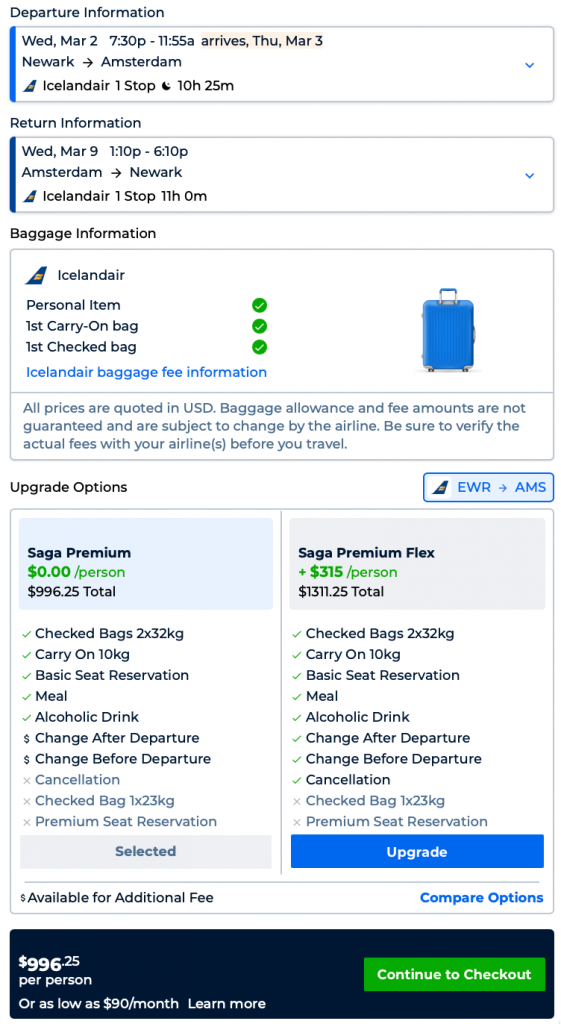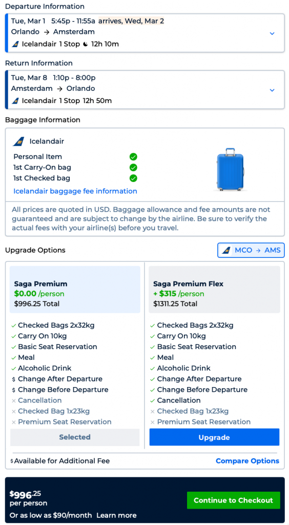 | Icelandair; business class | NYC, IAD, BOS, ORD, MCO to Amsterdam, Netherlands for $996 R/T or 2in1 with Iceland