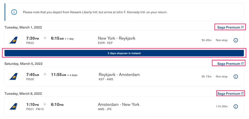 Icelandair allows long stopover in Iceland on your way TO Europe or on your return. Which is great opportunity to discover several countries during one trip. Stopover in Iceland can be booked directly own Icelandair.com website.