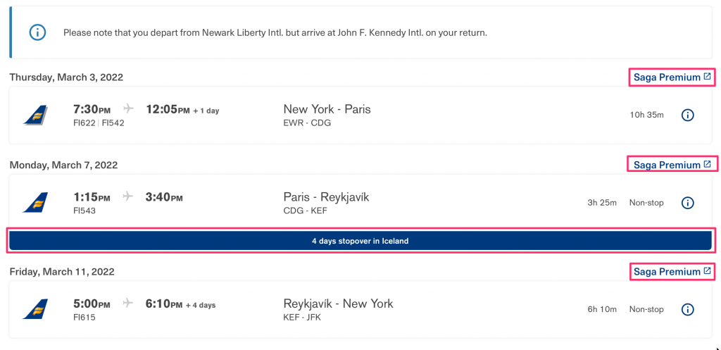 Icelandair allows long stopover in Iceland on your way TO Europe or on your return. Which is great opportunity to discover several countries during one trip. Stopover in Iceland can be booked directly own Icelandair.com website.
