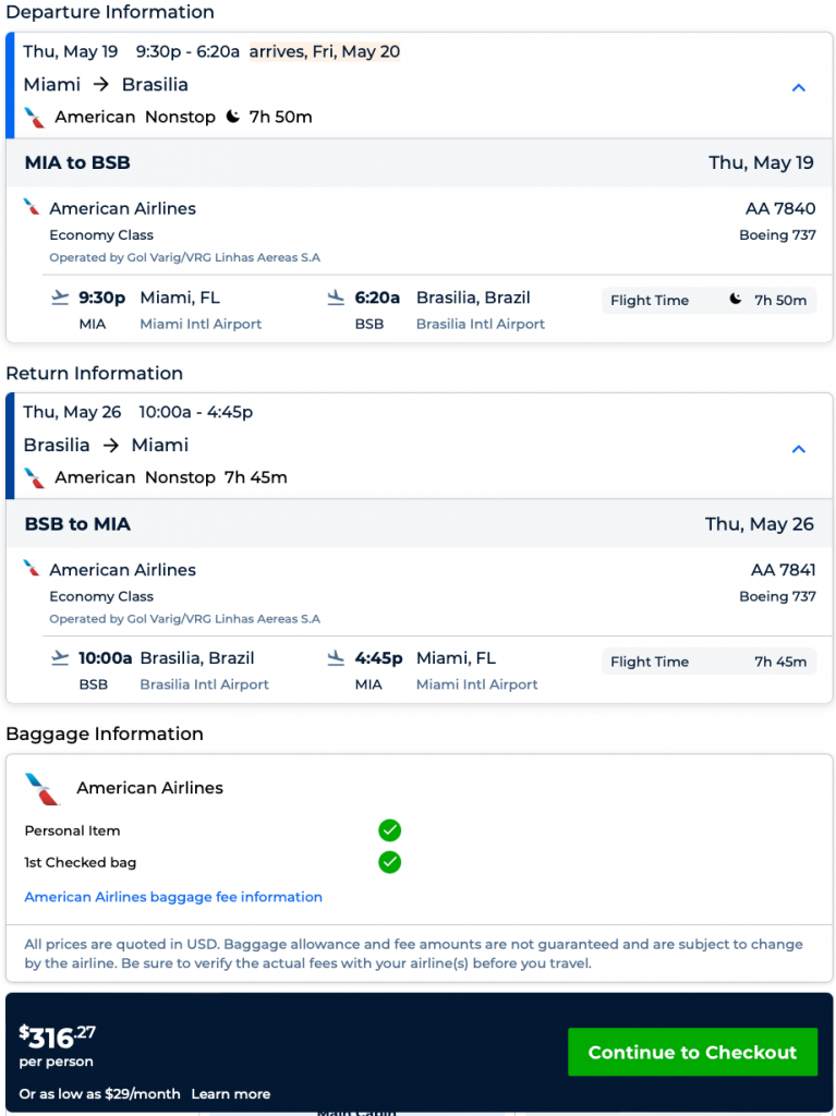 Amazing deal: Miami to Brazil: Brasilia from $316 round-trip.