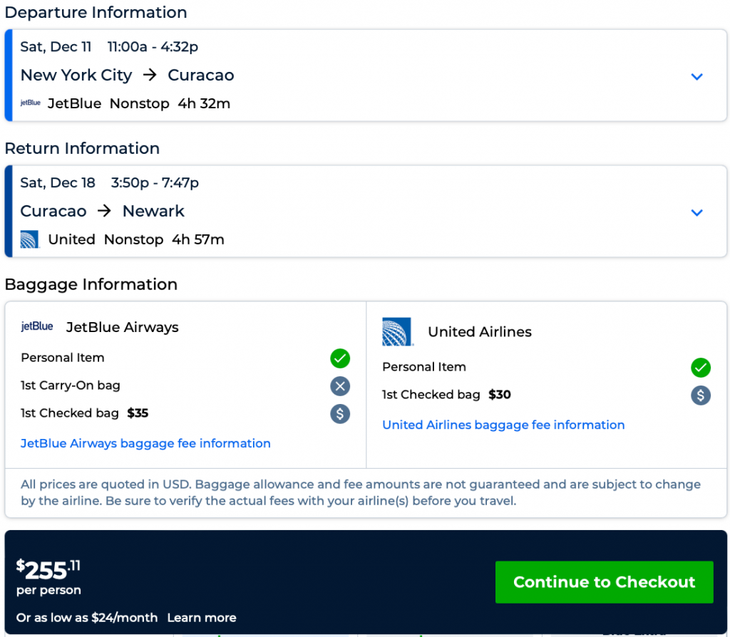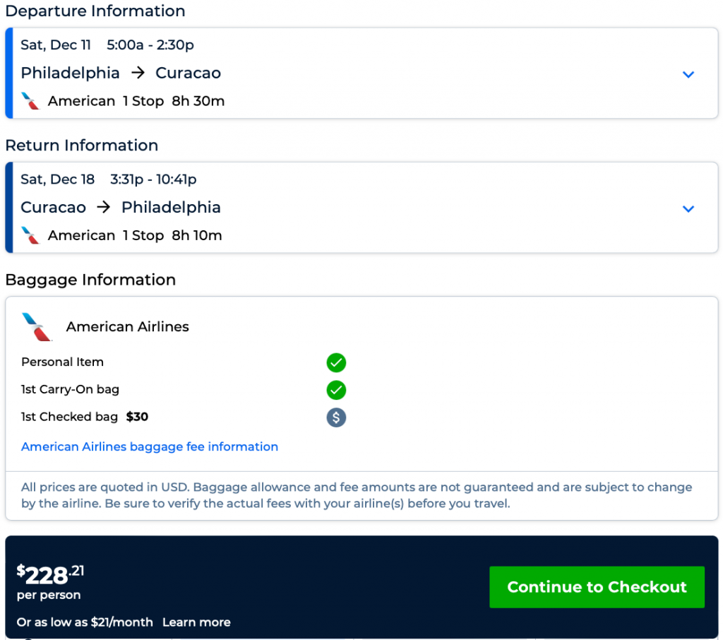 New York/Newark (nonstop) and Philadelphia to Curacao from $228 R/T