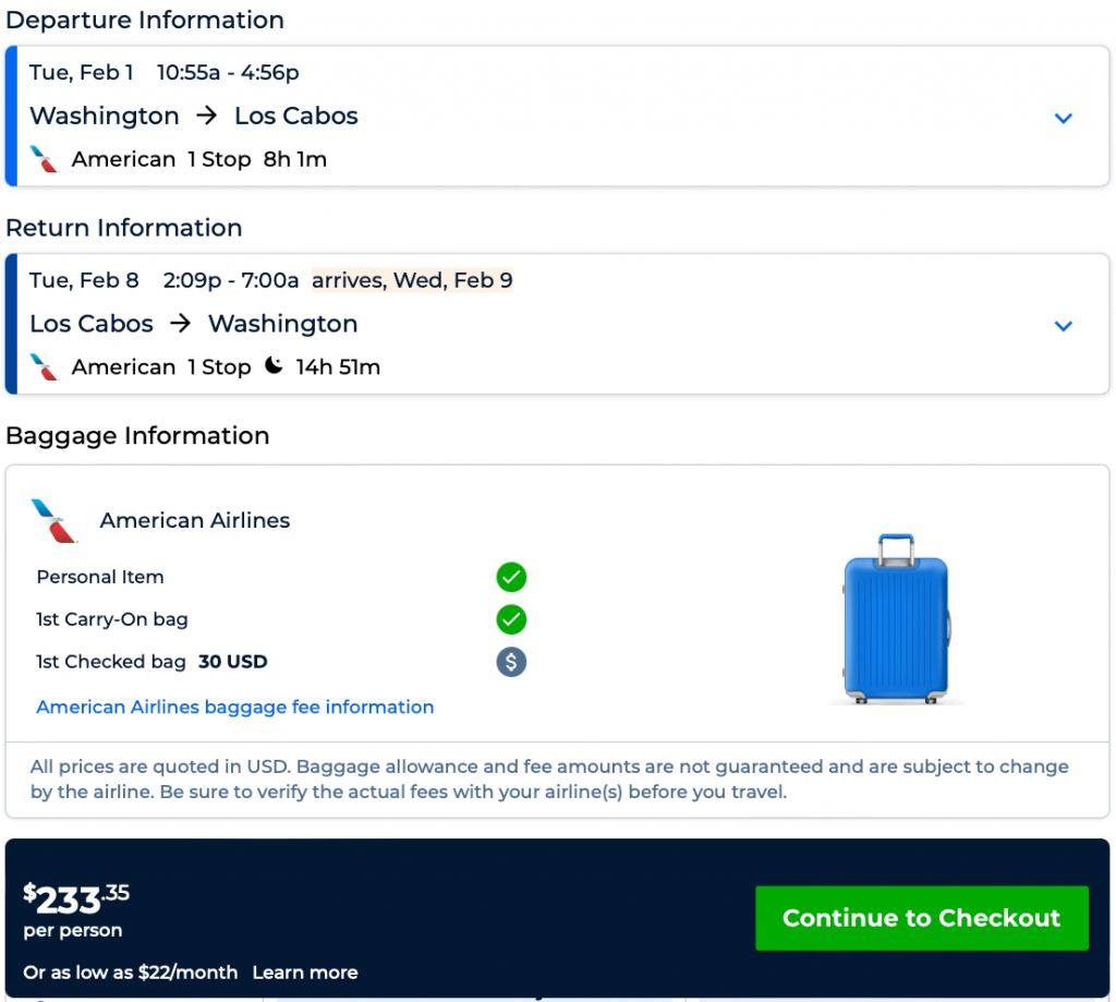 | AA | Atlanta, New York (nonstop), Washington DC, Philadelphia to San Jose Cabo, Mexico from $233 R/T