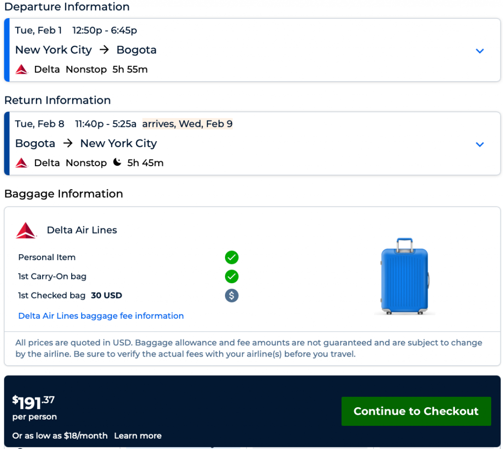 Delta’s Award Travel is subject to government-imposed taxes and fees and carrier-imposed charges, which are the responsibility of the passenger and must be paid at the time the ticket is booked.