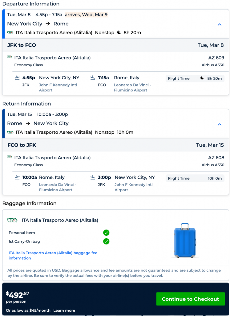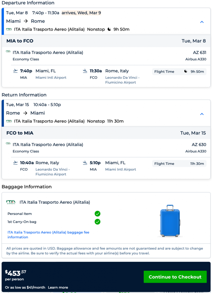 Amazing deal: Miami and New York/Newark to Rome, Italy from $453 round-trip.