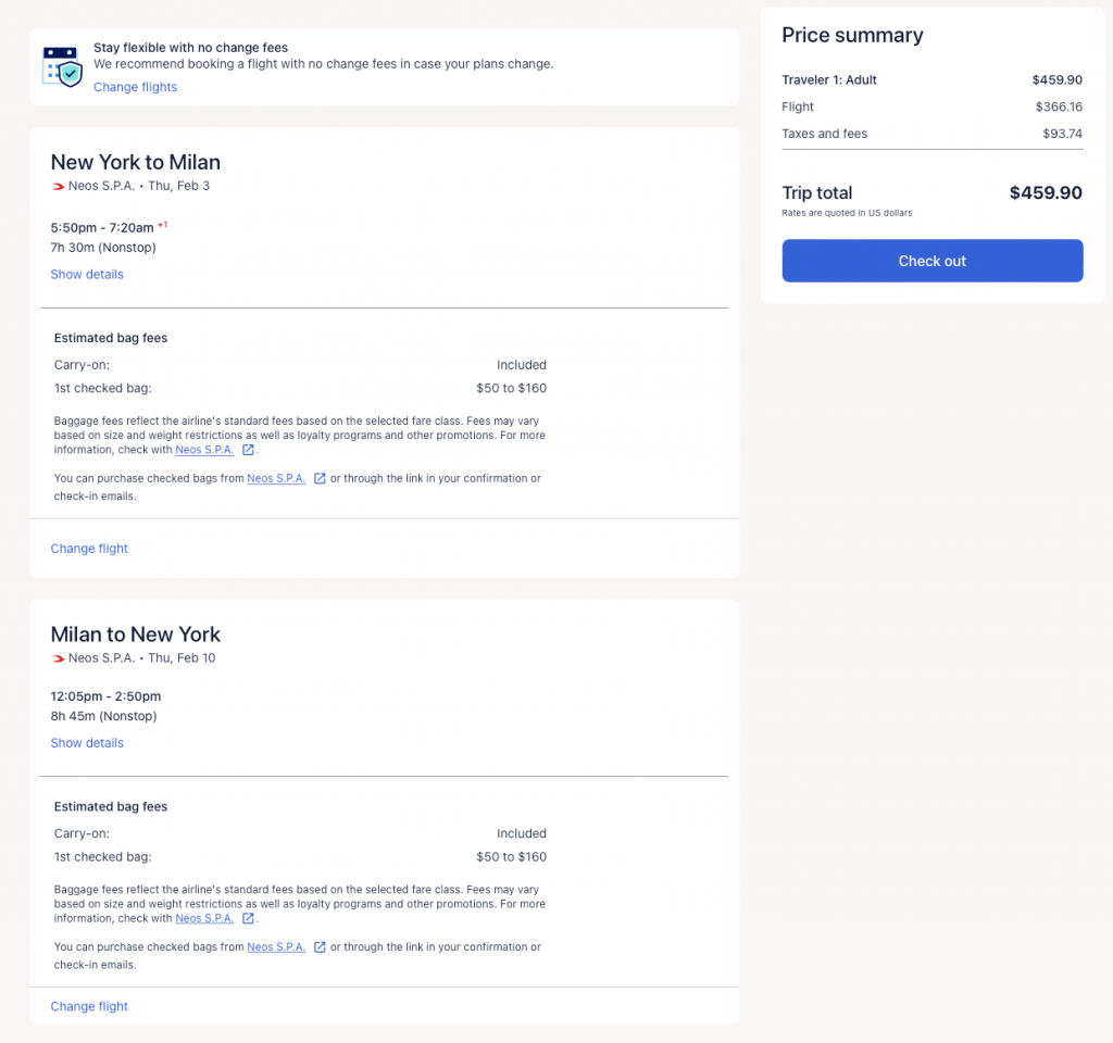 | Nonstop | New York to Milan, Italy for $460 R/T