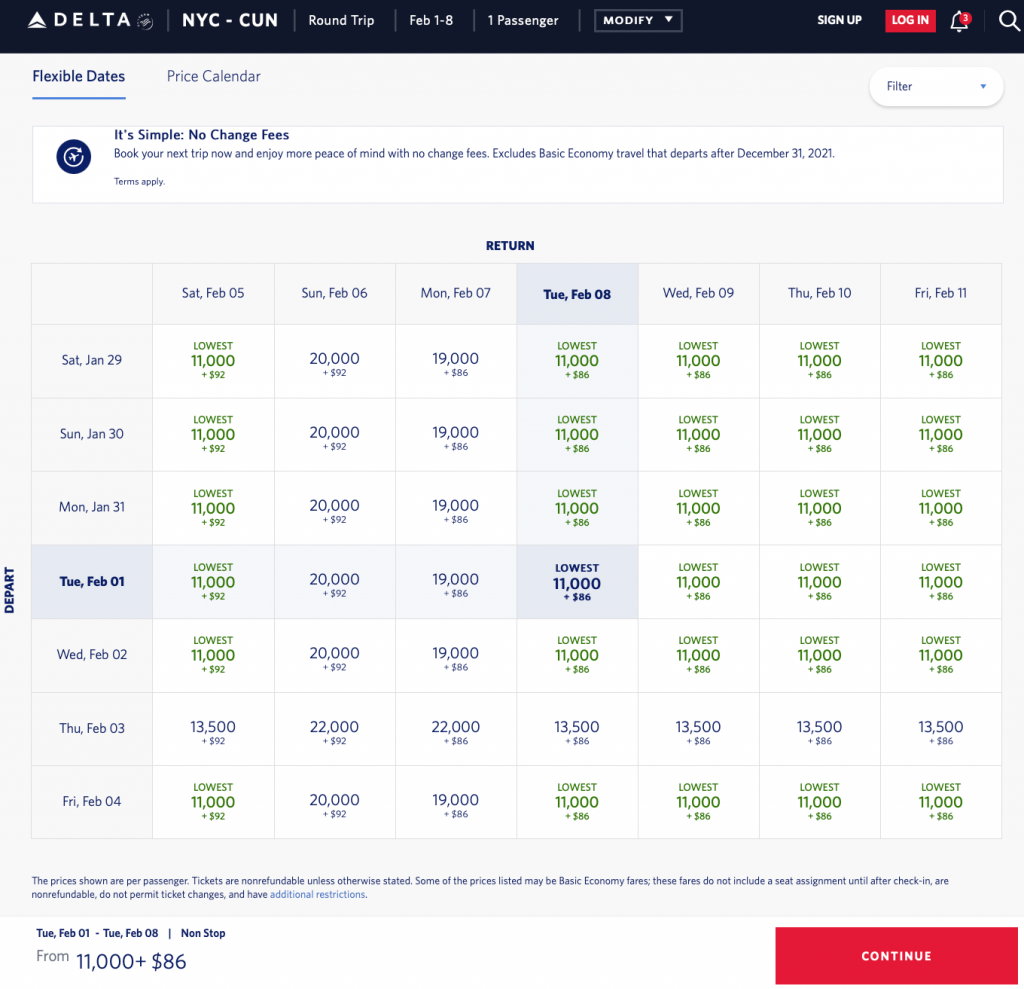 Amazing award travel deals via Delta — round-trip flights via Delta to Cancun, Mexico from 11000 SkyMiles + taxes and fees.