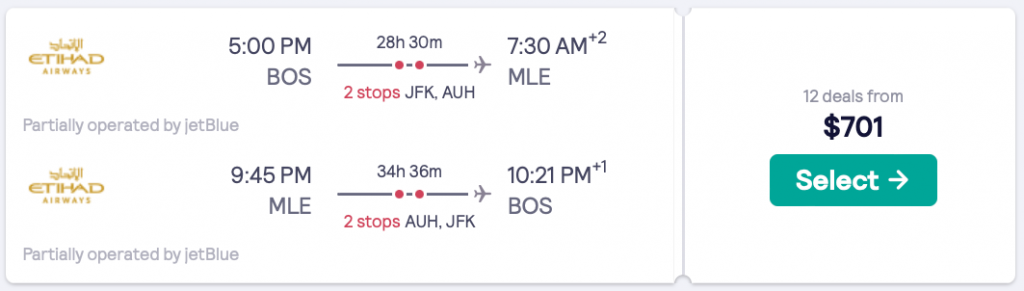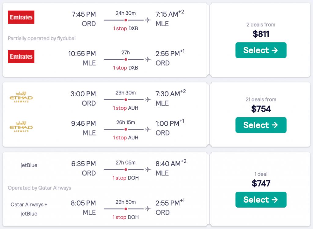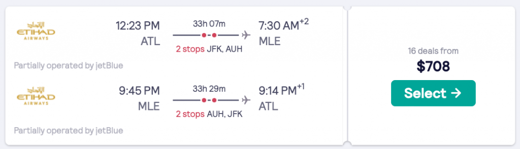 Amazing deal: Atlanta, Miami, Philadelphia, Chicago, New York, Washington DC, Boston, Dallas, Houston, Los Angeles, San Francisco to the Maldives from $701 round-trip.