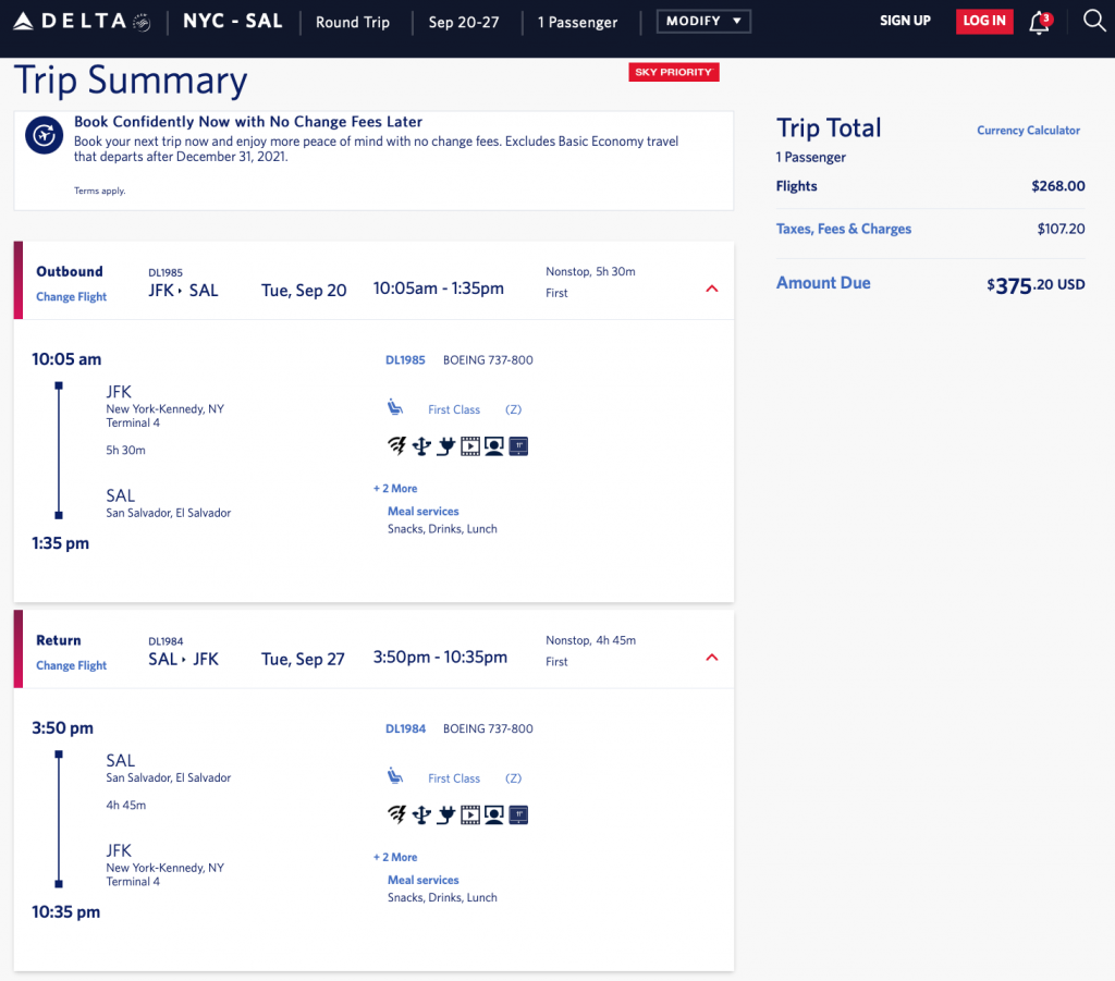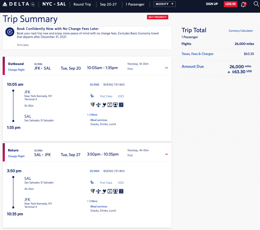 screenshots from Delta, made on Jan 7, 2022
