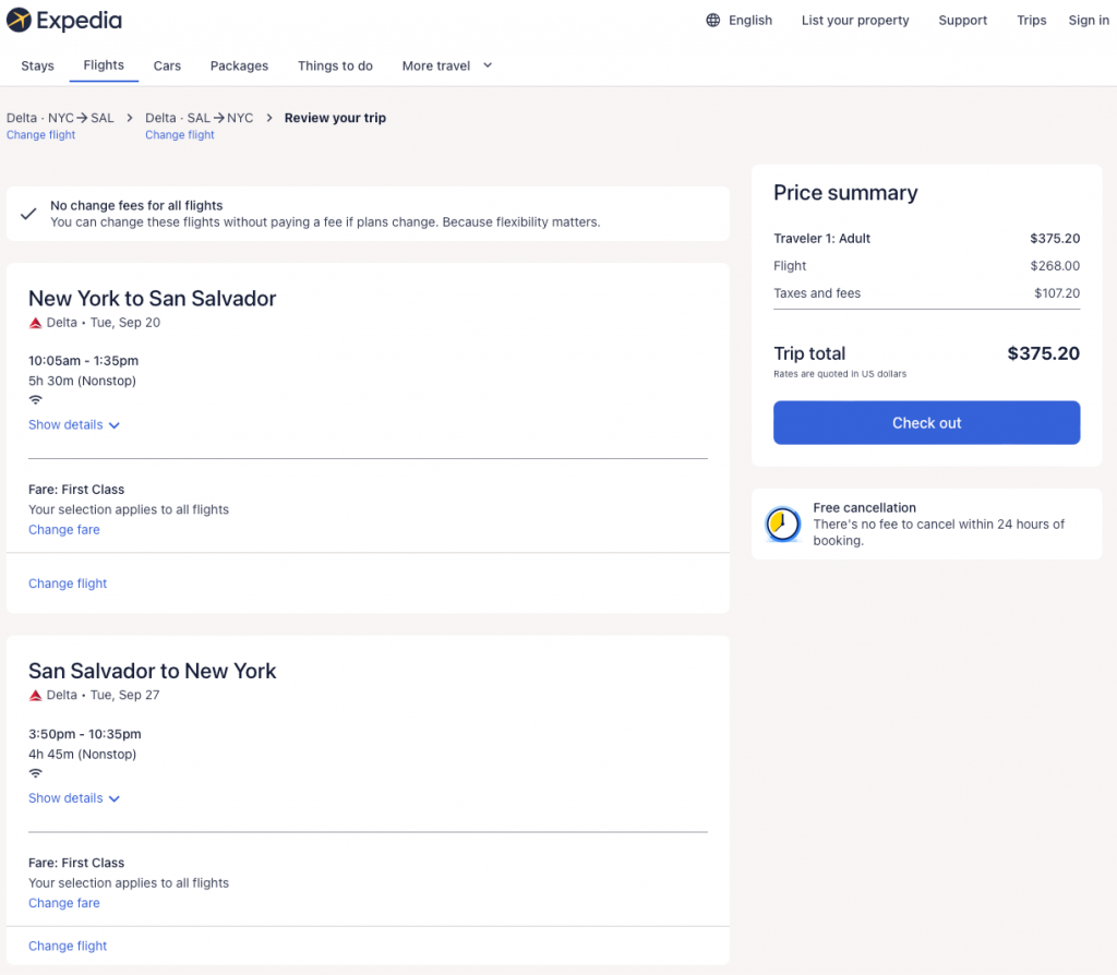 Screenshot from Expedia