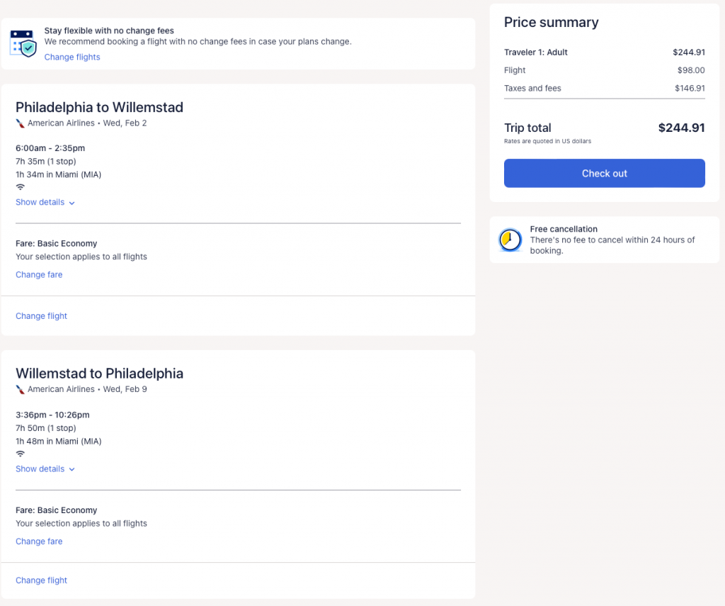 Flights to Curacao from $245 R/T from New York (nonstop) and Philadelphia