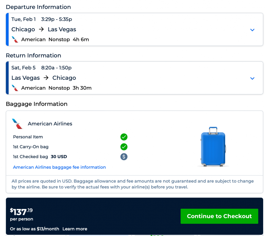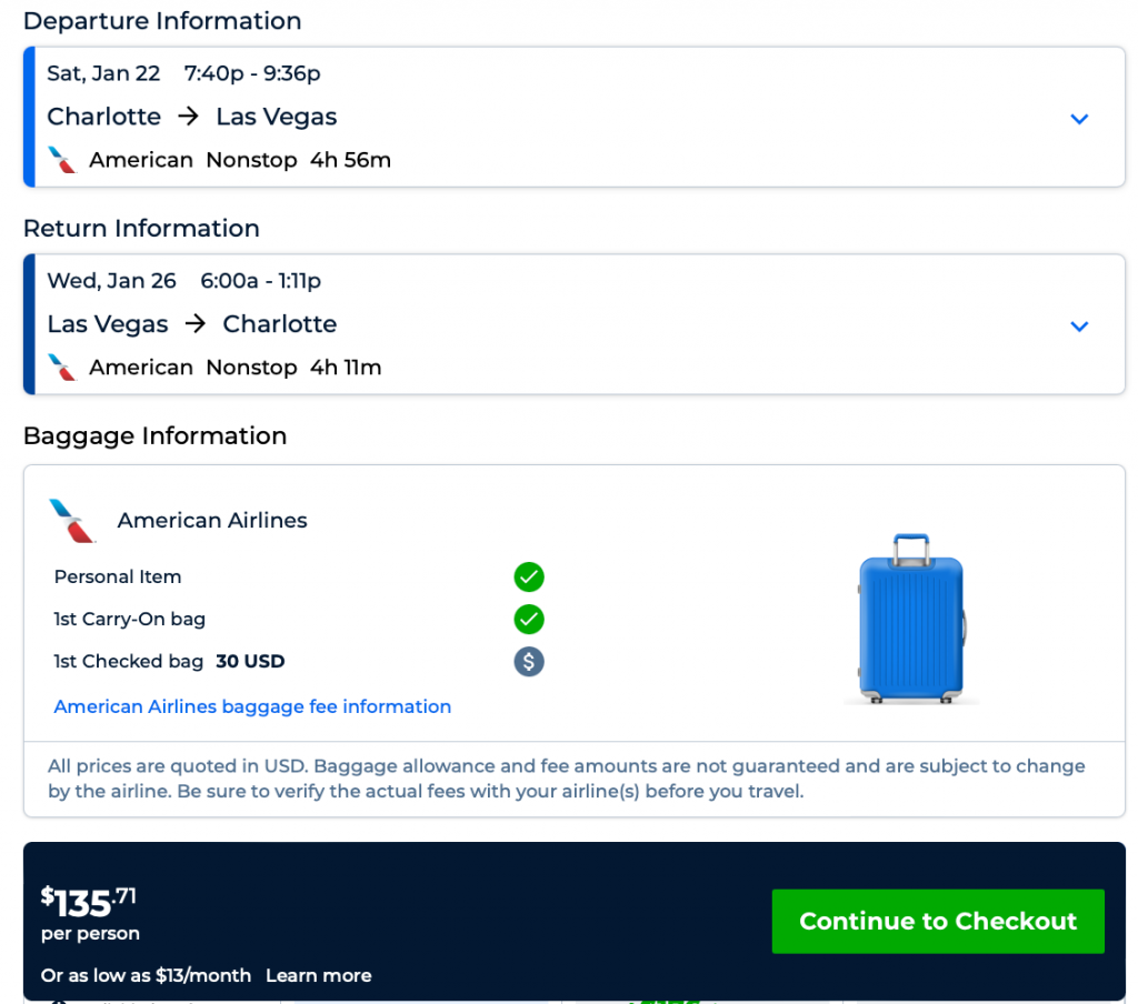 AA nonstop flights to Las Vegas from $135 R/T (Miami, Charlotte, Philadelphia, Chicago)