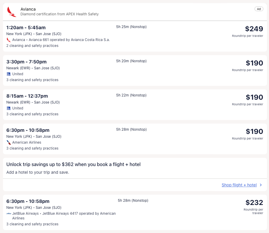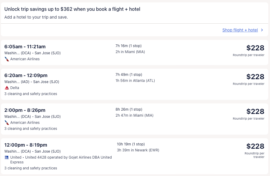 Amazing deal: New York, Newark, Miami, Orlando, Philadelphia, Los Angeles nonstop; Washington DC, Boston, Houston to Costa Rica from $176 round-trip.
