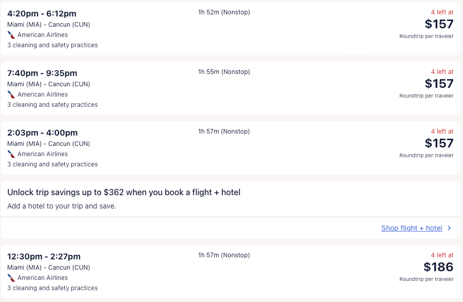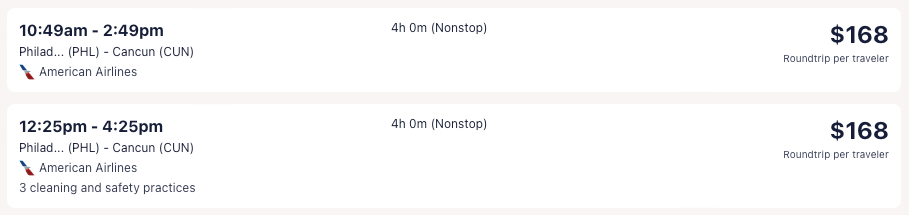 AA nonstop flights to Cancun, Mexico from $157 R/T