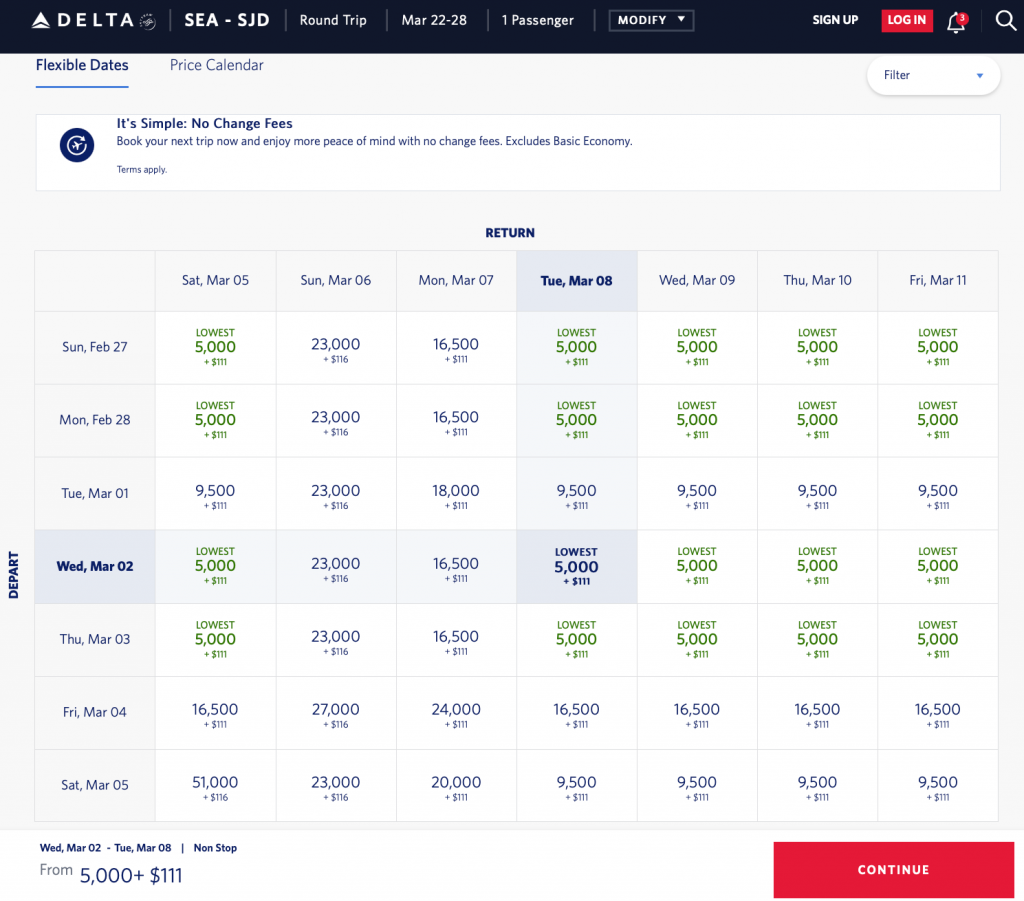 Amazing award travel deals via Delta — round-trip flights via Delta from Seattle to Mexico for 5000 miles + taxes and fees.