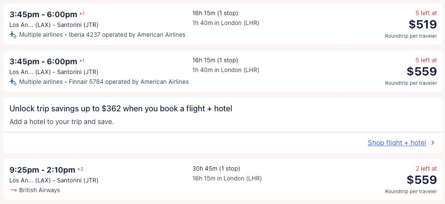 Amazing deal: New York, Newark, Boston, Washington DC, Chicago, Los Angeles, San Francisco, Charlotte, Dallas to Santorini, Greece from $460 round-trip.