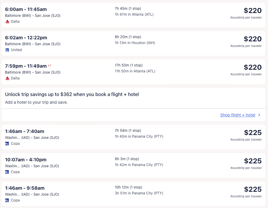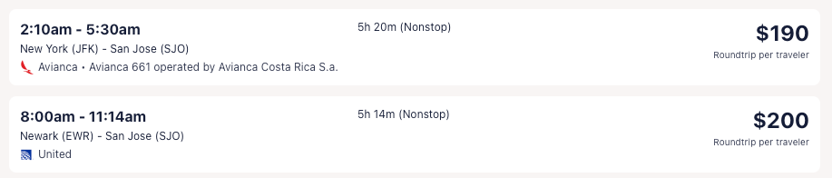 Amazing deal: New York, Newark, Miami, Los Angeles nonstop; Washington DC, Baltimore, Houston to Costa Rica from $175 round-trip.