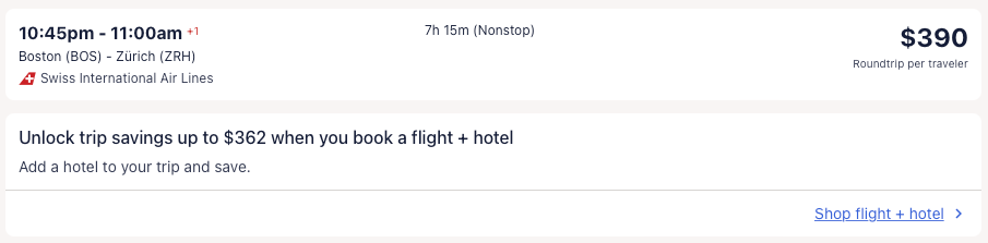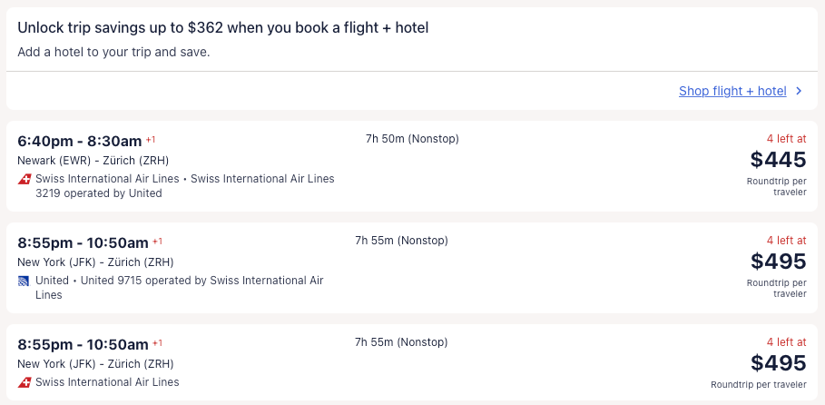 Amazing deal: New York, Newark, Chicago, Boston, Washington DC, Philadelphia, San Francisco to Zurich, Switzerland from $390 round-trip.