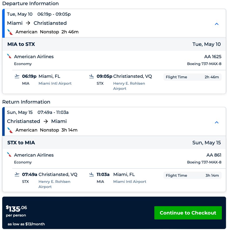 Amazing deal: Miami to USVI: St. Croix from $135 round-trip.
