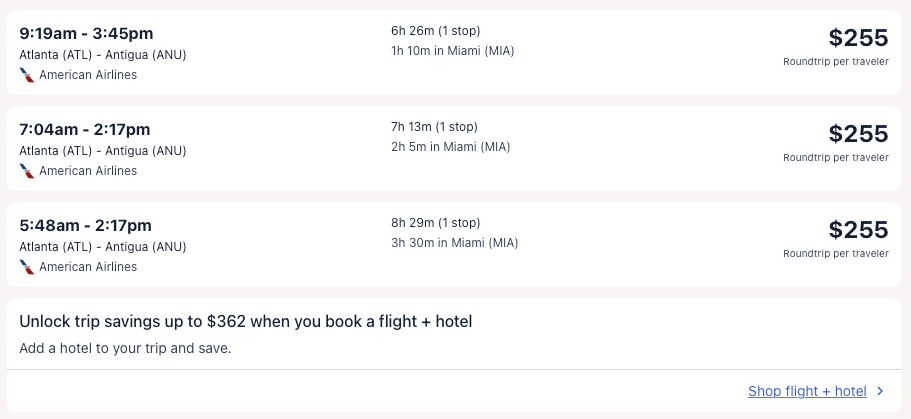 Amazing deal: Atlanta, New York (nonstop), Detroit, Miami, Boston, Minneapolis, Philadelphia to Antigua from $240 round-trip.