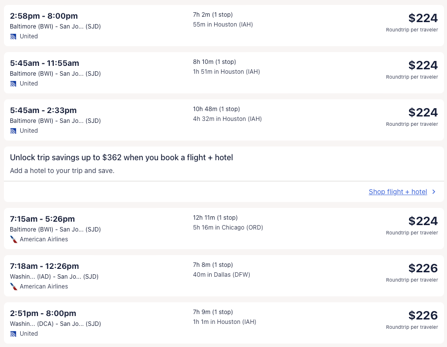 Amazing deal: Miami, Philadelphia, Baltimore, Washington DC, New York, Dallas, Houston, Austin, San Francisco, Los Angeles to Los Cabos, Mexico from $206 round-trip.