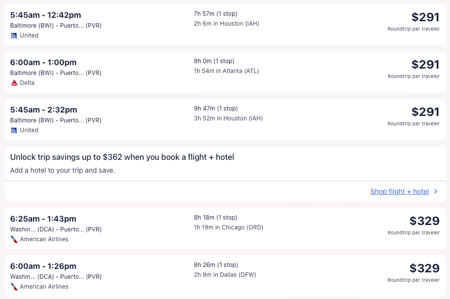 Amazing deal: Miami, Philadelphia, Baltimore, Washington DC, Charlotte, New York, Dallas, Houston, Austin, San Francisco, Los Angeles, Seattle to Puerto Vallarta, Mexico from $204 round-trip.