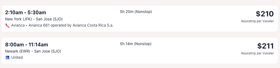 Amazing deal: Miami and New York to Costa Rica: San Jose from $149 round-trip.