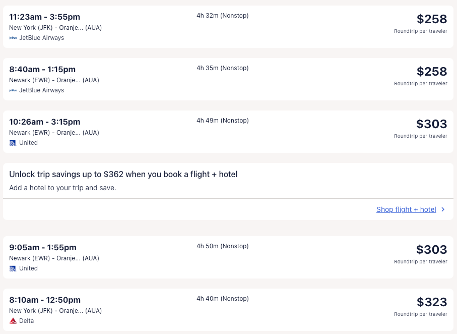 Amazing deal: Miami, Philadelphia, New York, Newark, Boston to Aruba from $210 round-trip.