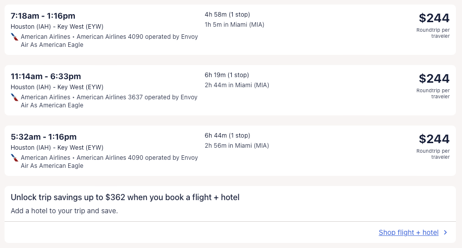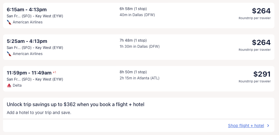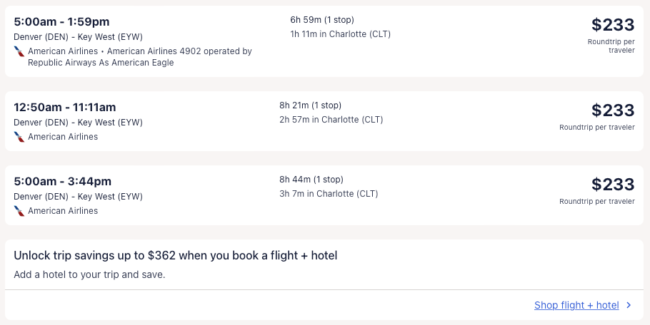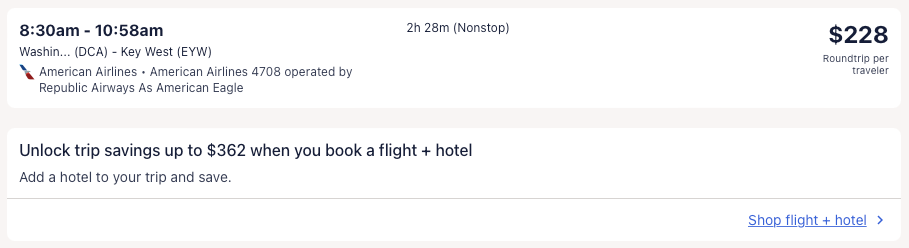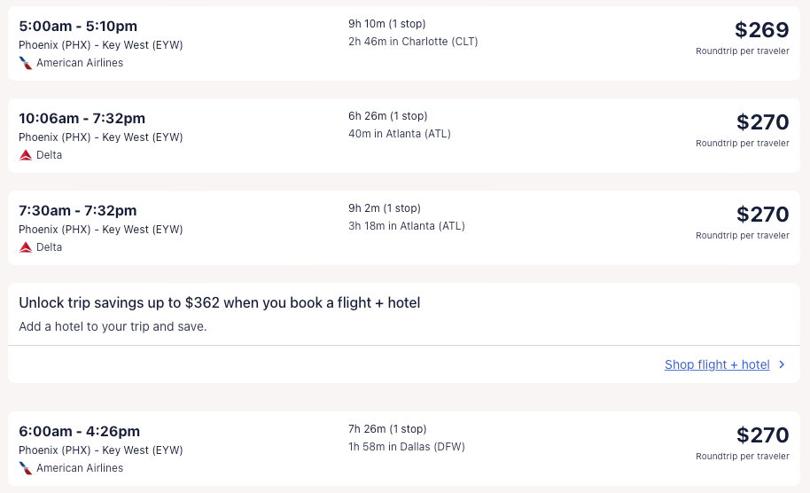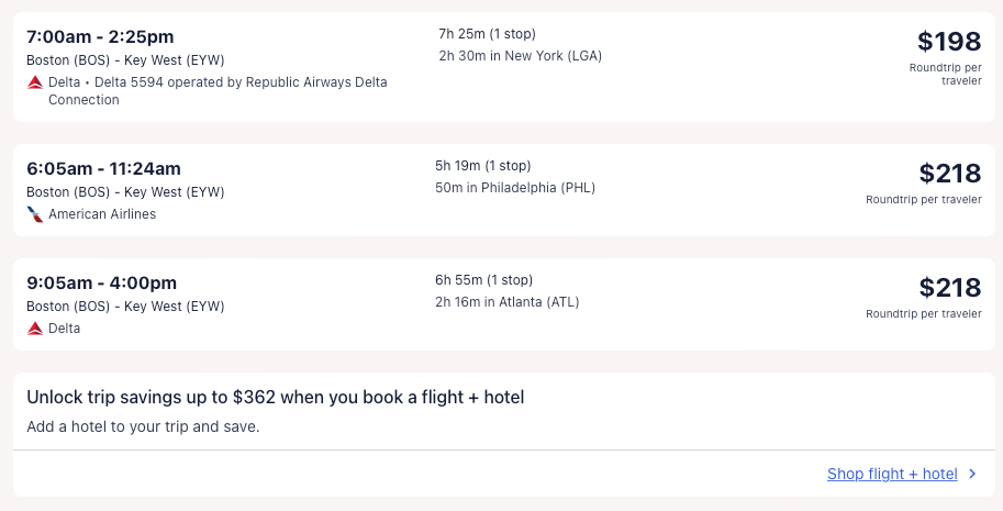 Amazing deal: Atlanta, New York, Orlando, Washington DC, Chicago (nonstop); Houston, Boston, San Francisco, Seattle, Denver, Phoenix to Key West from $210 round-trip.