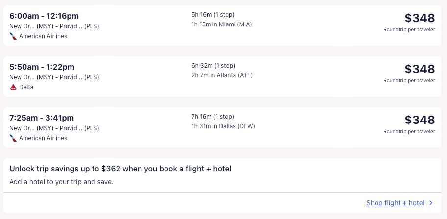 Amazing deal: Atlanta, New York, Newark, Miami, Philadelphia (nonstop); Baltimore, Orlando, New Orleans, Los Angeles, San Francisco to Turks and Caicos from $275 round-trip.