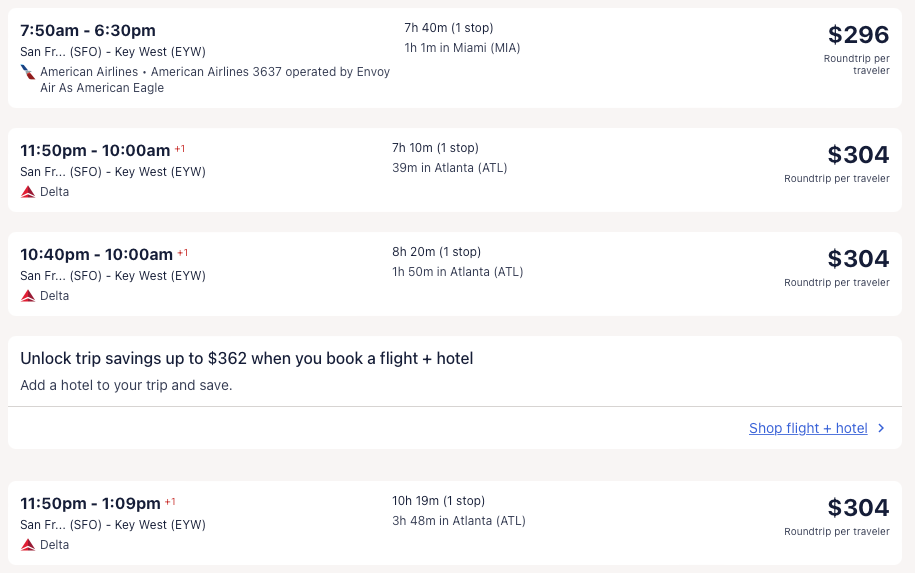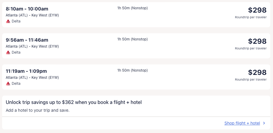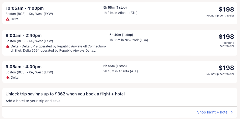 Amazing deal: Atlanta, New York, Washington DC (nonstop); Denver, Phoenix, Boston, Houston, San Francisco to Key, West, Florida from $198 round-trip.
