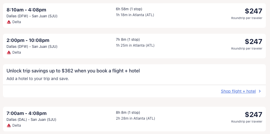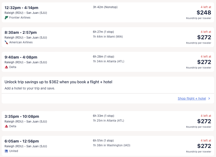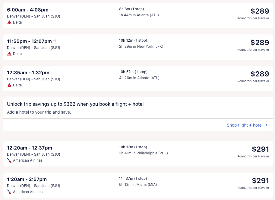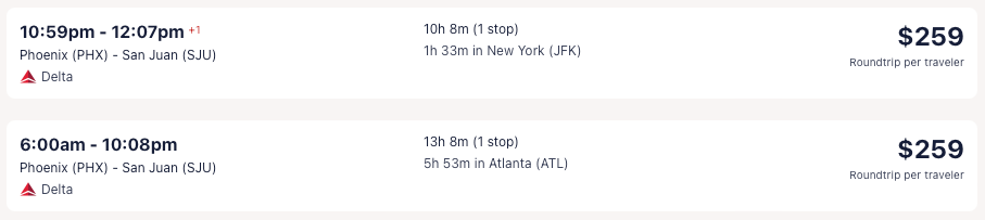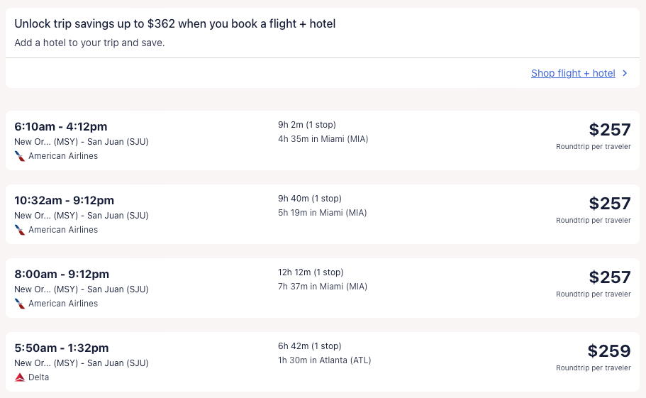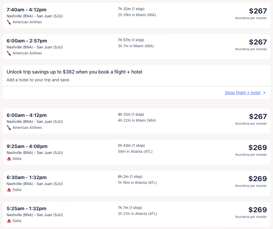 Amazing deal: Newark, New York, Austin, Boston, Washington DC, Raleigh, Orlando, Minneapolis, Chicago (nonstop); Phoenix, Dallas, San Francisco, Detroit, Nashville, Atlanta, New Orleans to Puerto Rico from $162 round-trip.