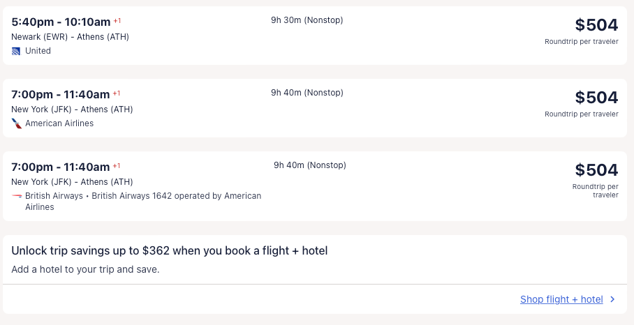 Amazing deal: New York and Newark to Greece: Athens from $504 round-trip.