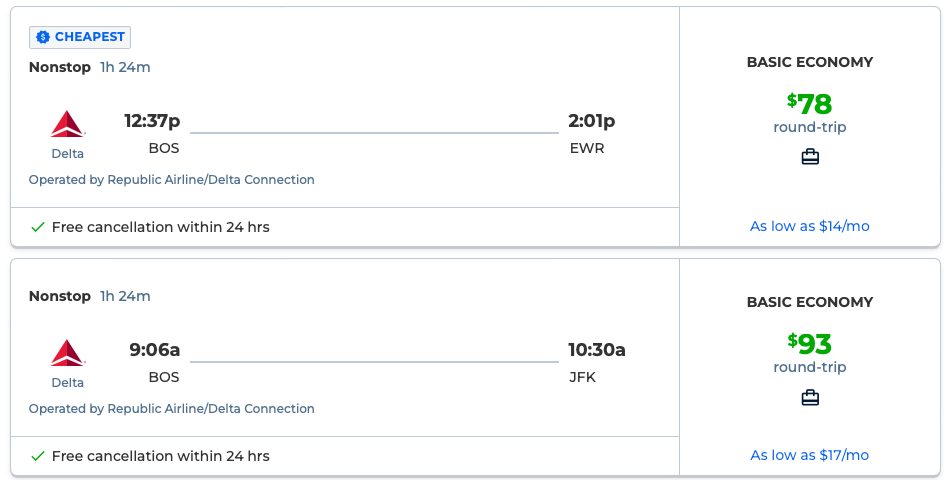Amazing deal: Boston to New York, Newark or Washington DC from $78 round-trip.