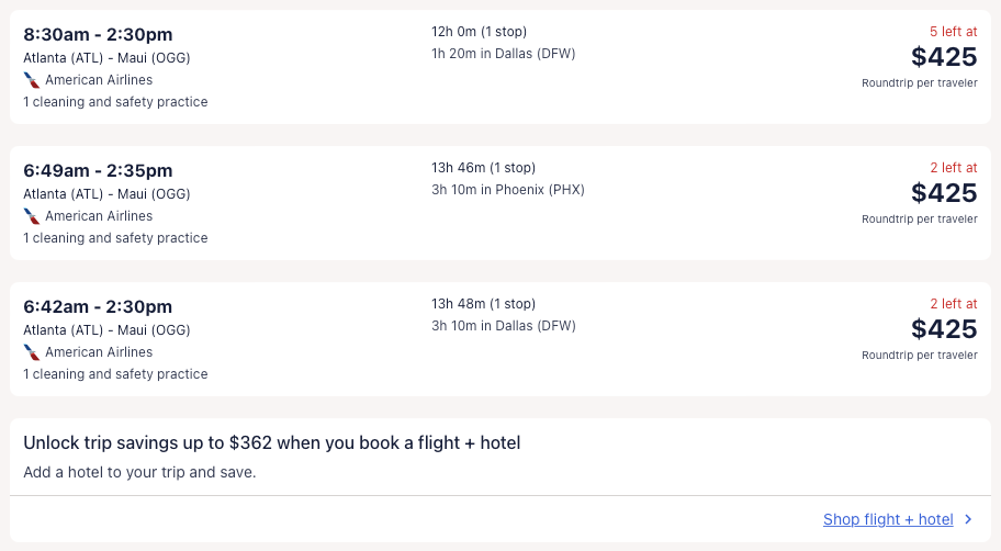 Amazing deal: Atlanta, Miami, Orlando, Baltimore, Dallas, Denver, Houston, Salt Lake City, New Orleans to Maui, Hawaii from $327 round-trip.